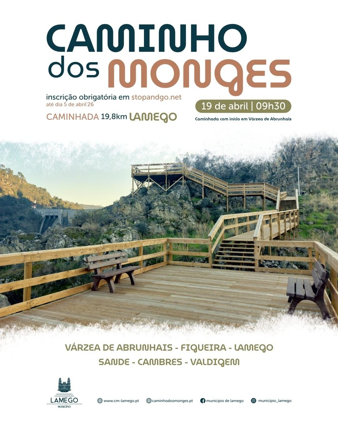O Caminho dos Monges será percorrido no próximo dia 19 de abril, domingo, na mesma rota que os monges trilhavam quando, ao sair dos mosteiros de São João de Tarouca e Salzedas e descendo ao Vale do Varosa, se dirigiam às quintas vinhateiras onde produziam vinho. A caminhada tem início em Várzea de Abrunhais, às 9h30. É recomendável que todas as pessoas usem roupa e calçado confortável e se façam acompanhar de chapéu ou boné e protetor solar. Também devem garantir que se mantenham hidratadas durante todo o percurso. O Caminho dos Monges é um projeto de cariz cultural, ligado à génese do Vinho do Porto e à grandeza única dos vales do rio Varosa e Douro, constituindo-se como o primeiro grande caminho de ecoturismo cultural nacional, envolvendo os municípios de Lamego e Tarouca. Inscrições obrigatórias até 5 de abril em https://stopandgo.net/events/caminho-dos-monges-2026